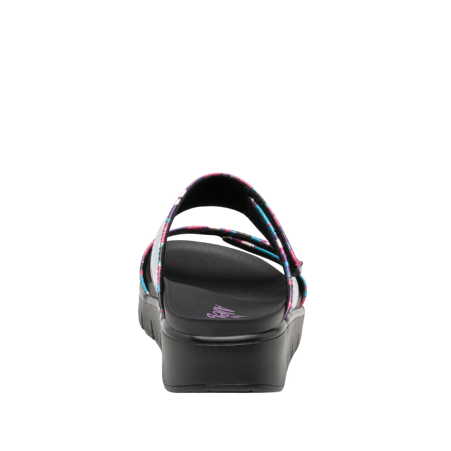 Featured in a fun Collage Party print, this vibrant colorway will be a standout addition to your sandal collection.